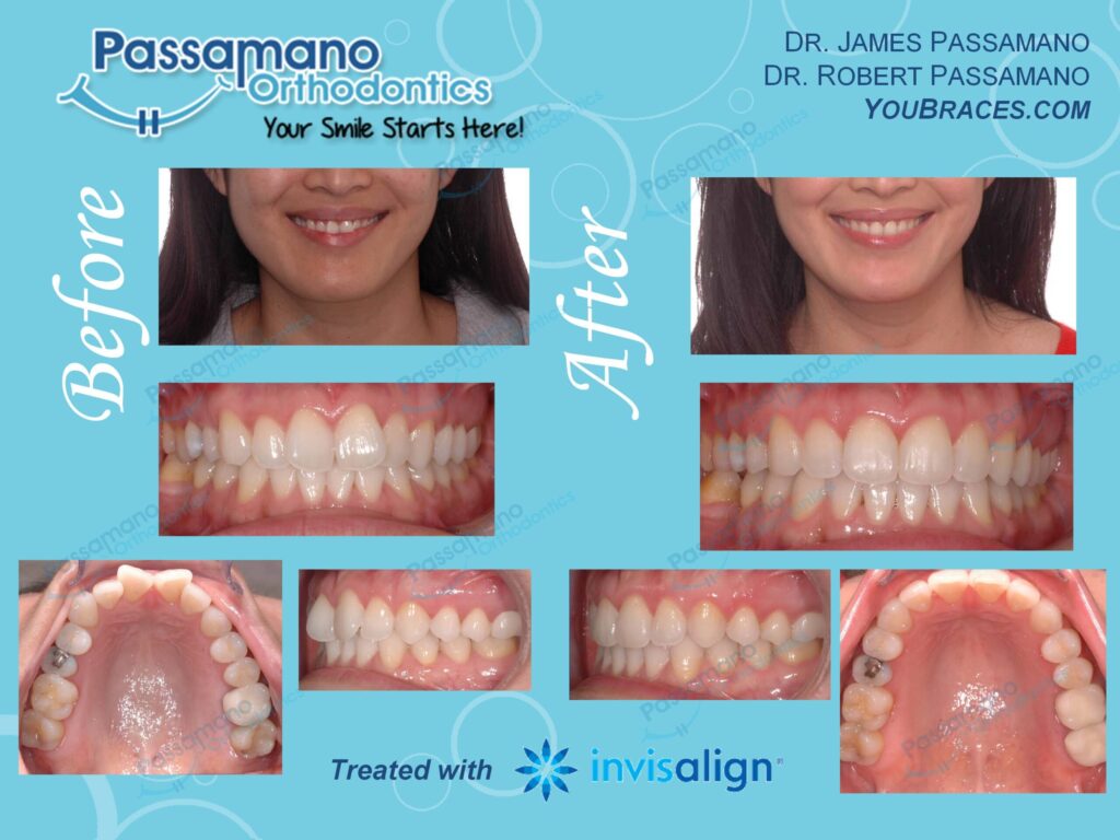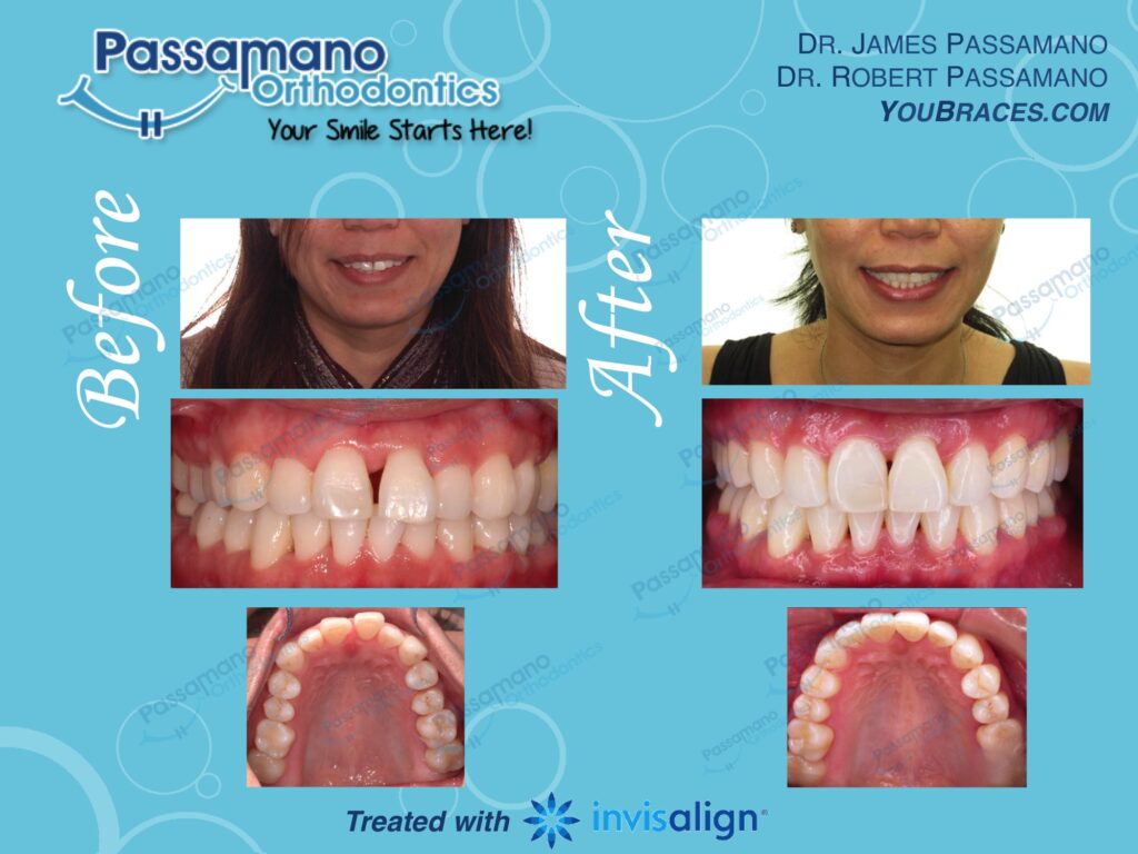 This young adult wanted to fix her front upper teeth. We were able to straighten all the teeth with Invisalign and what a difference her before and after is.