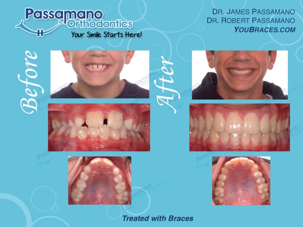 Here’s a Phase 1 & 2 treatment that required creating space for the permanent teeth below the gum line. If space wasn’t created, then those teeth would start crashing into each other and cause other problems.